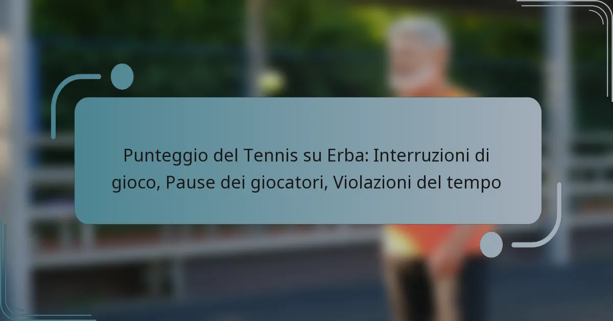 Il punteggio nel tennis su erba coinvolge vari elementi che possono interrompere il flusso di una partita, inclusi interruzioni di gioco, pause dei giocatori e violazioni temporali. Le interruzioni di gioco possono essere causate da fattori come il maltempo o infortuni, mentre le pause dei giocatori consentono di riposare o ricevere assistenza medica. Inoltre, le violazioni temporali si verificano quando i giocatori superano il tempo assegnato tra i punti, influenzando potenzialmente le loro prestazioni e la dinamica complessiva della partita. Comprendere questi aspetti è fondamentale per mantenere l’integrità del gioco.